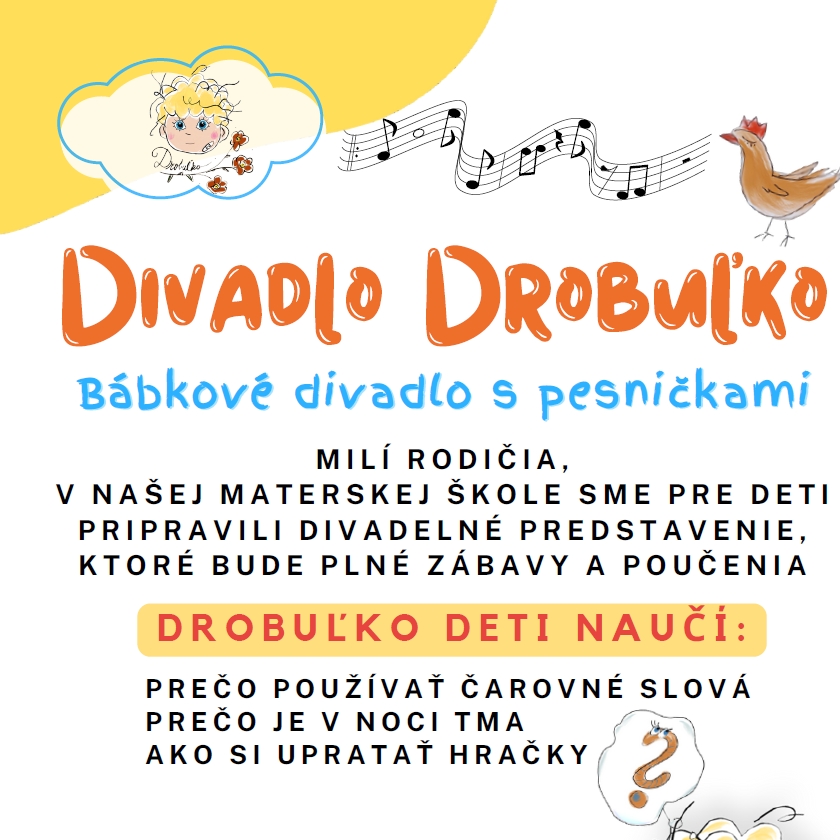 V pondelok 26. januára 2026 dopoludnia príde ku nám do MŠ Divadlo Drobuľko.